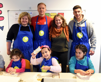 Düsseldorf, 05. Dezember 2017 – Weihnachten steht vor der Tür und für viele Erwachsene, vor allem aber für Kinder, bedeutet das: Zeit zum Plätzchenbacken. Fünf Mitarbeiter des Finanzierungsspezialisten DLL besuchten daher am Montag das Kinder- und Jugendwerk Arche in Düsseldorf, um dieses kurzerhand zur Weihnachtsbäckerei umzufunktionieren. Dabei wurden sie von zwei ganz besonderen Gästen überrascht: Die Spieler Taylan Duman und Havard Nielsen des Fußballvereins Fortuna Düsseldorf statteten den Kindern einen Besuch ab, um gemeinsam mit ihnen Weihnachtsplätzchen zu kneten, zu formen und zu verzieren.