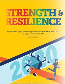If 2020 turned equipment management inside out, it also forced widespread adaption and innovation, just to continue doing business. “Everything is different, but the same,” says Jane Rethmeier, CEO of Harbor Capital Leasing, Inc., an Independent specializing in financing material-handling equipment. “COVID-19 caused shut-downs for many of our lessees last spring, resulting in some stagnation for us. But customers were adapting to conditions by summer, when they realized they had too much equipment or equipment that wasn’t in the right place. So many lessees moved equipment to locations where they had more demand. Once everyone got into the groove and found a new, temporary normal, we got really busy—and it’s been this way since August.”